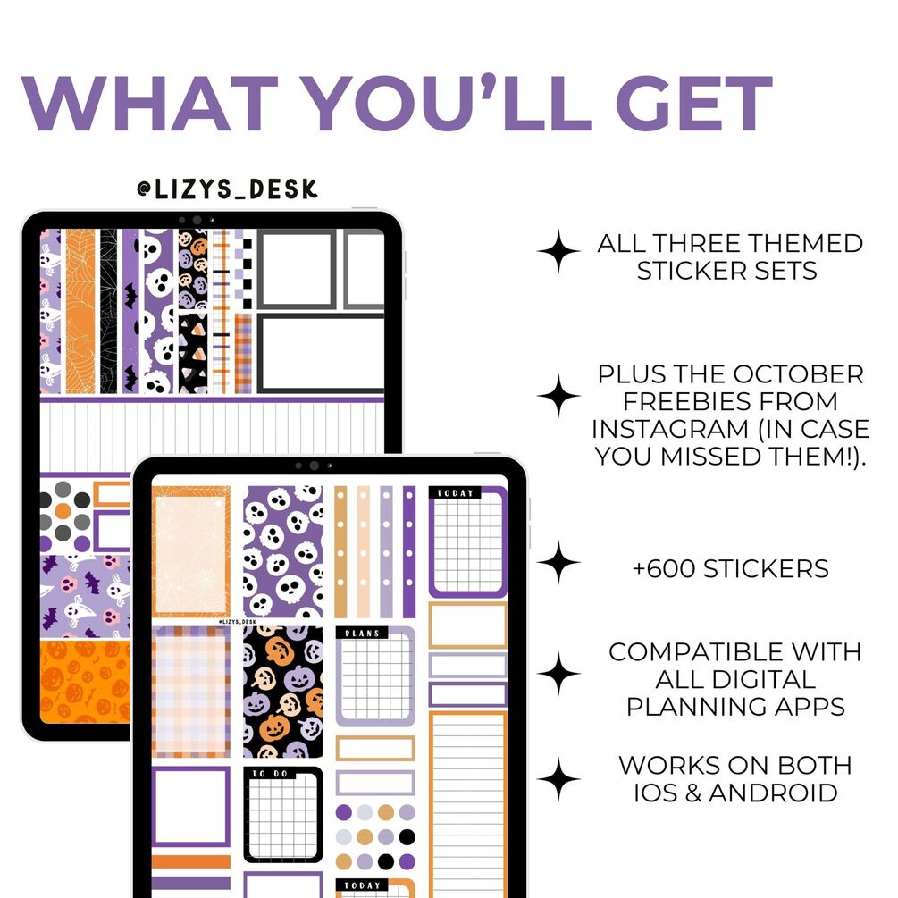 Get the ultimate October deal! This bundle includes all three themed sticker sets β the Monthly/Weekly pack, the Functional edition, and the Bullet Journal edition β plus the October freebies from Instagram (in case you missed them!).