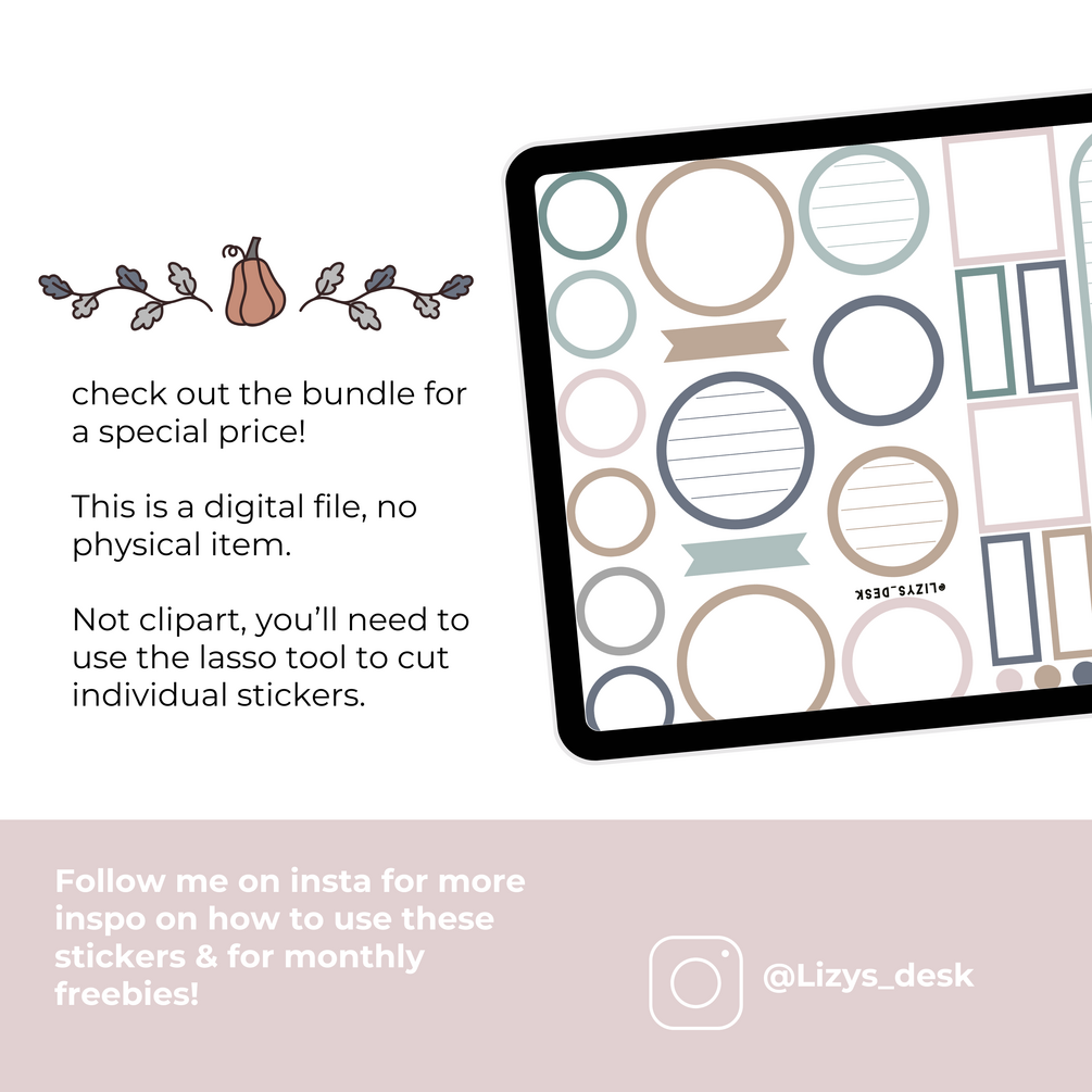 Stay organized in style! This functional set matches the Boho Autumn theme perfectly β filled with boxes, circles, lists, dots, and to-do labels that keep your spreads clean, minimal, and cozy.
