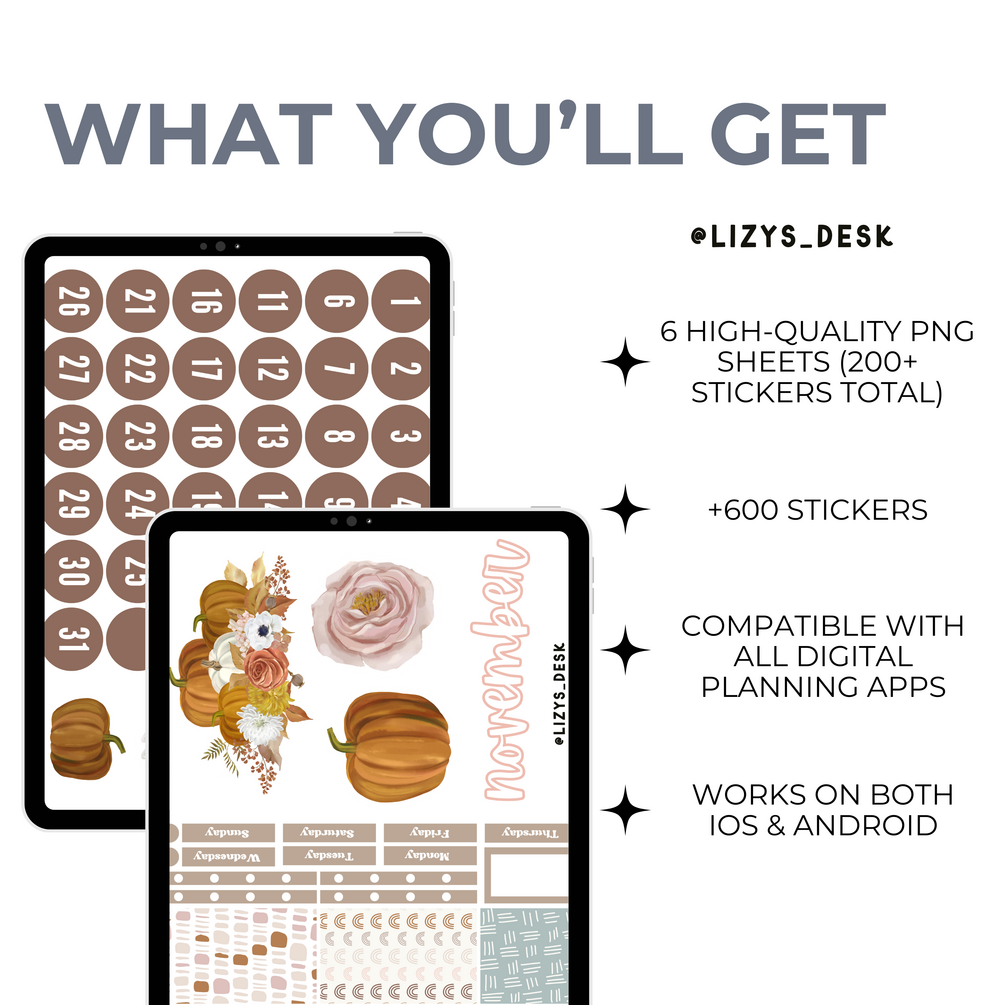 🍁 Boho Autumn Monthly & Weekly Digital Stickers